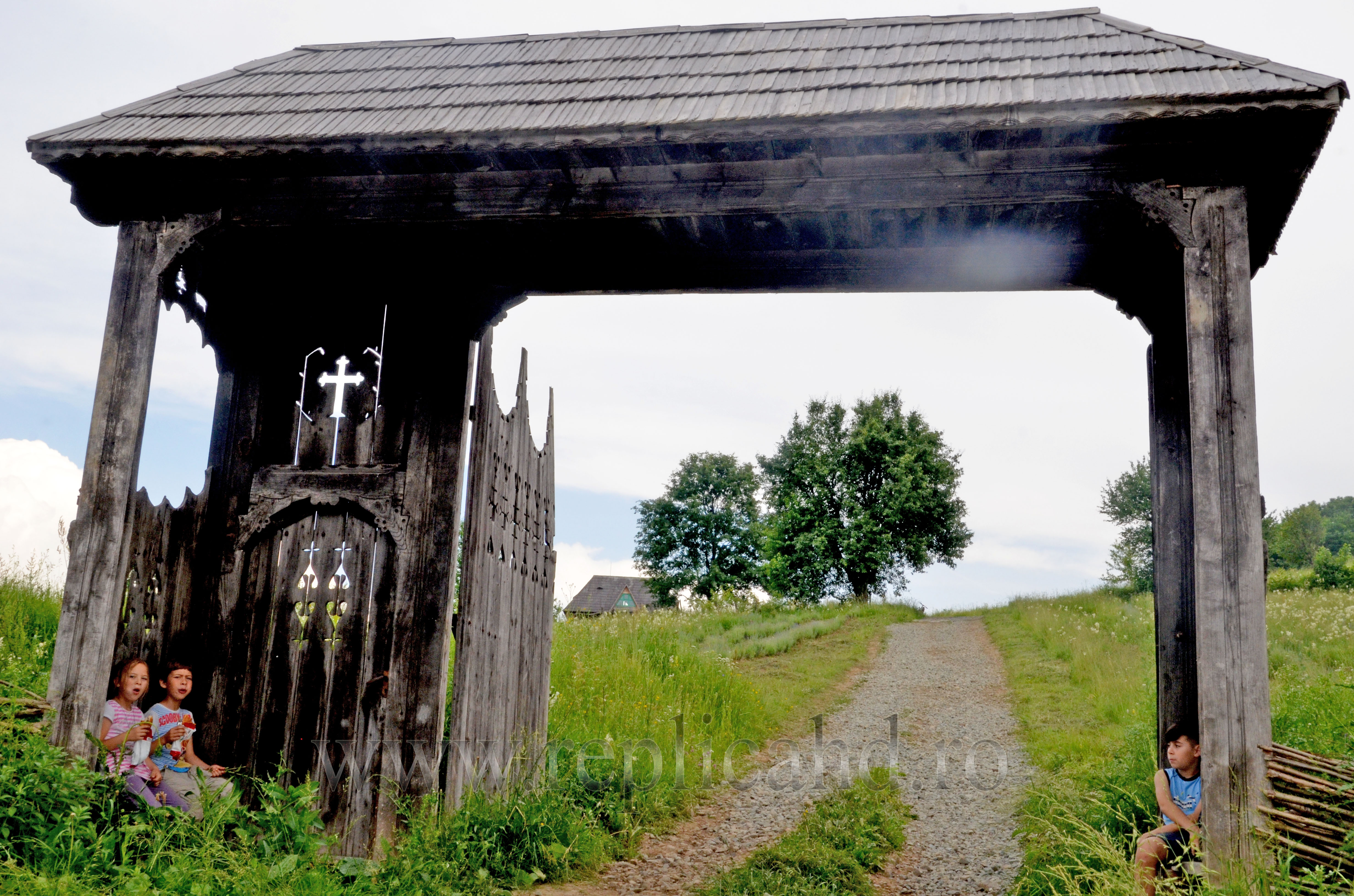 După vreo jumătate de oră de mers cu mașinile, am trecut granița județului Hunedoara și am ajuns în Țara Moților, în localitatea Glod, comuna Almașu Mare, județul Alba. Am oprit în fața unei porți mari de lemn construită în stil maramureșean. Dincolo de poartă, pe mijloc, urca un drum pietruit care ducea undeva, sus în deal. În stânga și dreapta drumului era o pajiște mirifică cu flori de câmp și levănțică. Întrebarea era, oare ce am putea vedea aici atât de special, cum ne-a spus Alexandra Marcu?