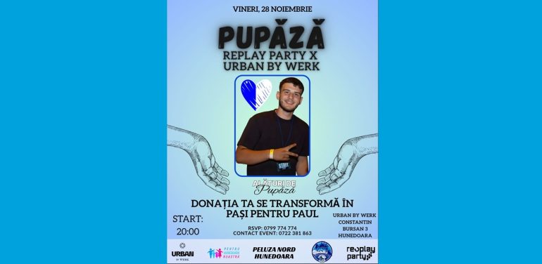 Hunedoara se mobilizează pentru Paul: „PUPĂZĂ Replay Party x Urban by Werk”, un eveniment caritabil pe 28 noiembrie