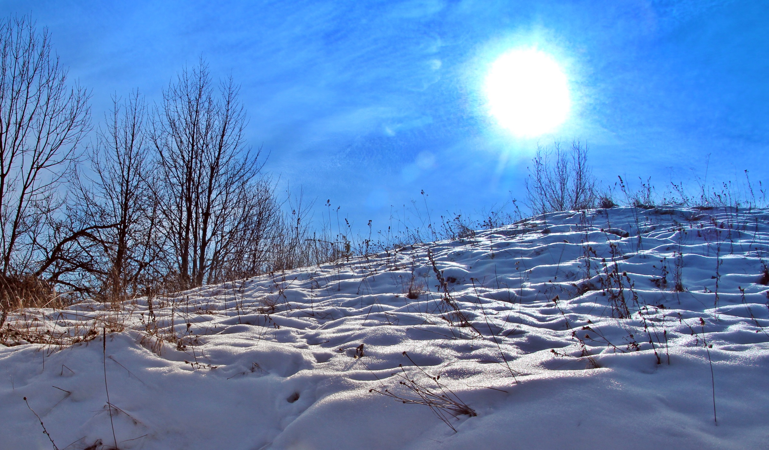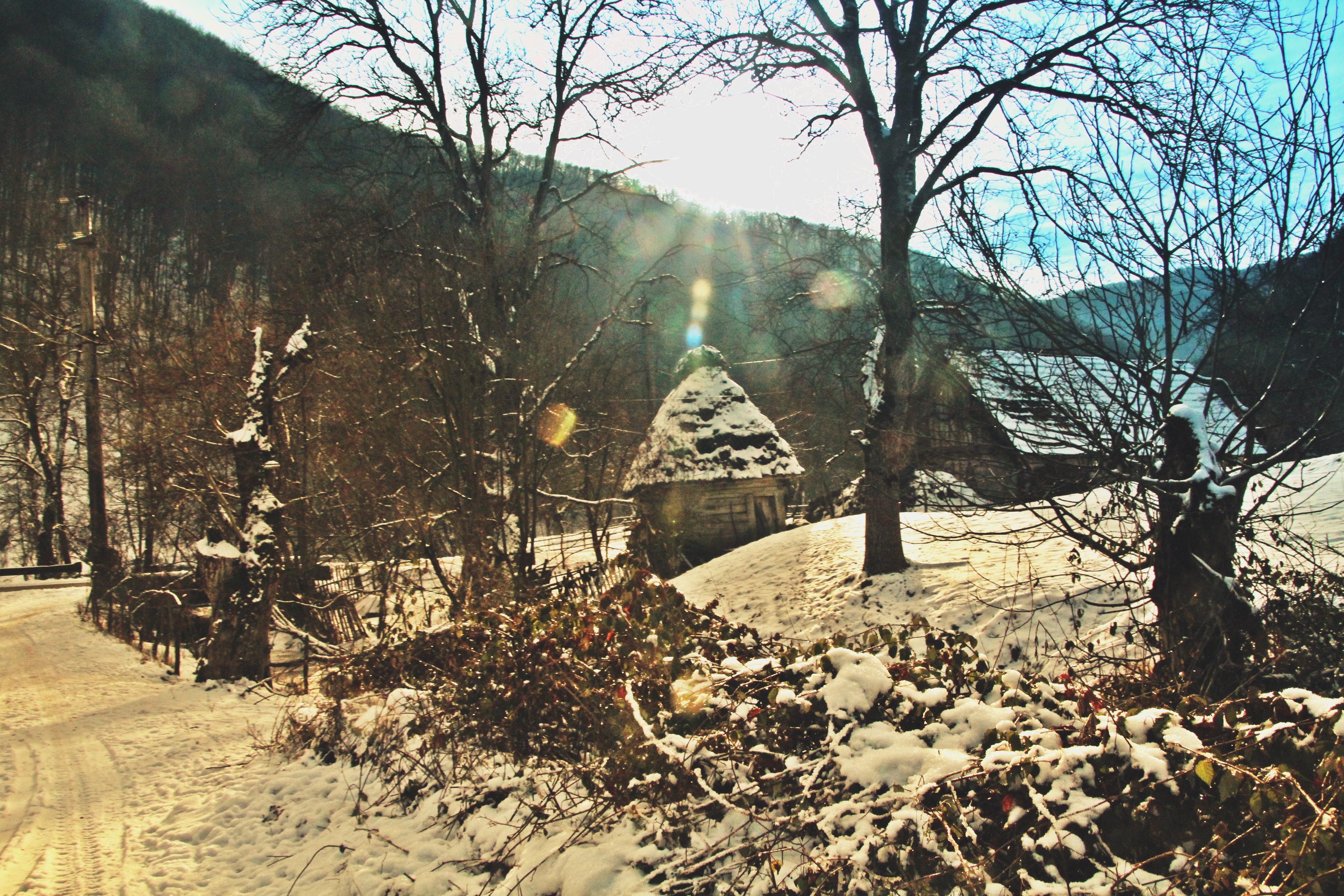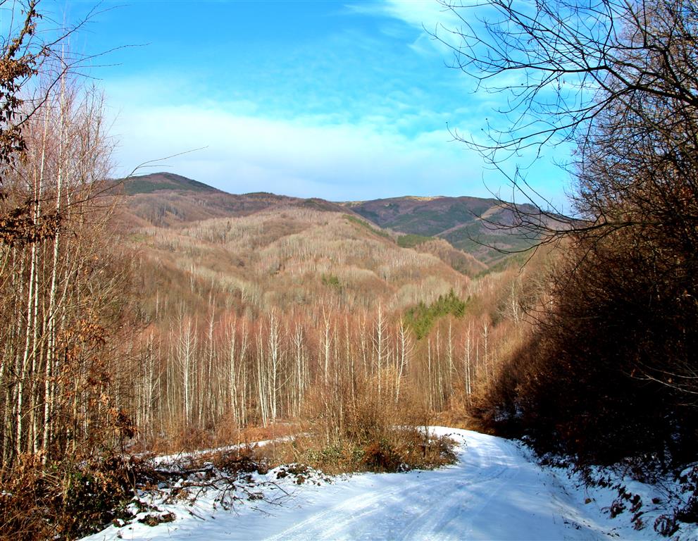Drumul e învelit cu zăpadă şi maşinile răzbat greu chiar dacă sunt 4×4 şi au cauciucuri de iarnă. Deasupra un cer albastru îşi întinde seninul peste lume şi dâre uşoare de nori par a fi lăsate de o pensulă măiastră.