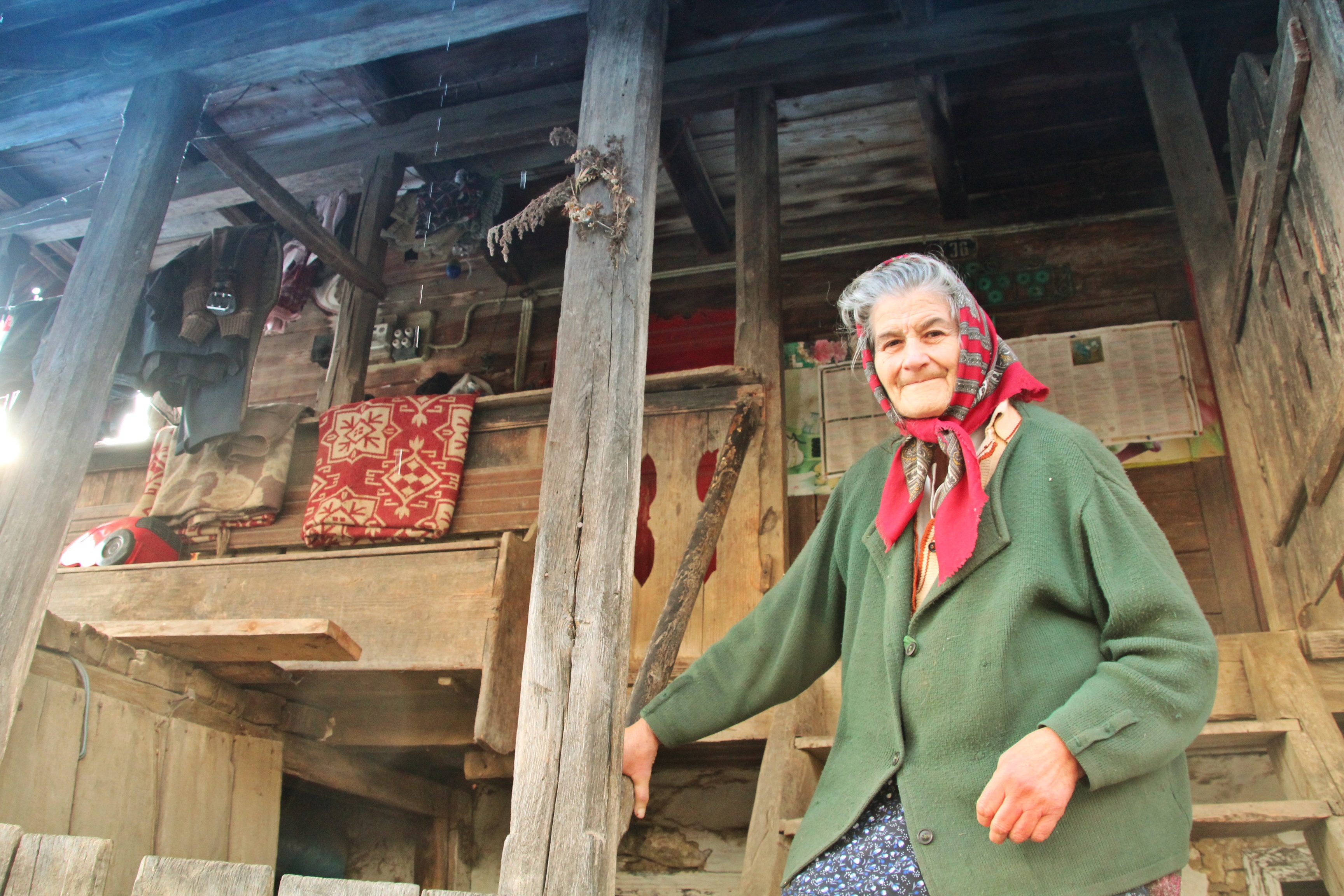 Vecina lui, Tanti Zoriţa e singură pe lume. Are 82 de ani şi casa pustie. Trăieşte în sărăcie dintr-un ajutor social de 120 de lei. Becul casei pâlpâie în camera întunecată, cu ferestre micuţe. „Trăiesc aşa … ca omu sângur! De ce mi-i mai dor? De lume! Nu mai am pe nime d-ai mei pe-aci. S-or duuus oamenii din sat! Mai îi câţiva vecini, puţini… D-aia-mi pare bine când mai vine cineva pe la mine”. Din şase copii, a rămas doar ea în viaţă: „Cinci fete ş-un băiat! Ş-am rămas singură”, se vaită bătrâna. Chiar dacă acum e săracă lipită, casa mare, cu camere largi, cu soba odată frumoasă, acum ciobită, cu pereţii încălziţi de covoare ţesute arată că gospodăria a avut parte de vremuri cu mult mai bune: „Lucru cum pot, cum îmi ajută Dumnezău, aşa fac. În el am nădejde! Mi-i grea viaţa, da’ n-am ce face … Animale, nimic! Nu mai poci ţânea – am avut vaci şi boi, am avut cai, oi, porci, nu mai am nimic! Nici găini nu mai am că le-o mâncat vulpea, le-o străpălit de pe lângă casă. Cu ajutoru’ social mă descurc cum poci, bine că mi l-or dat! Îi puţân, d-apăi îi!” Nu are televizor, ci doar un amărât de radio vechi cu antena legată cu leucoplast. Alte voci nu îi ajung în casă: „Nu mi-i frică! De ce să îmi fie?! Pe ’cia nu trec oameni să fure, ce să fure?! Sărăcia?”