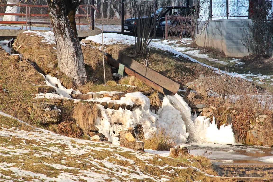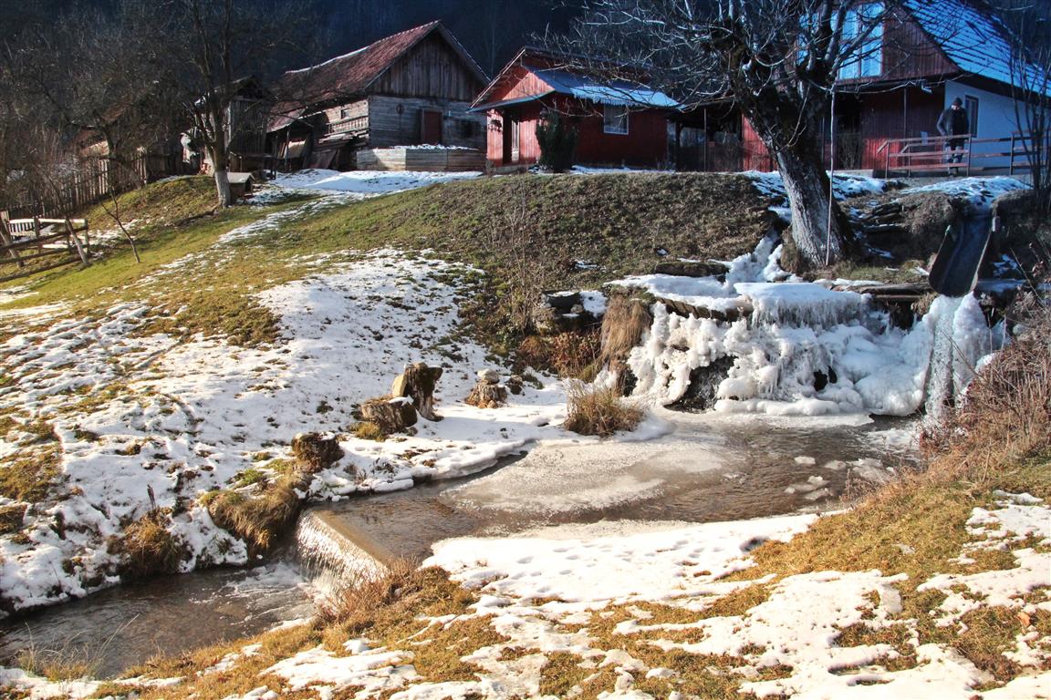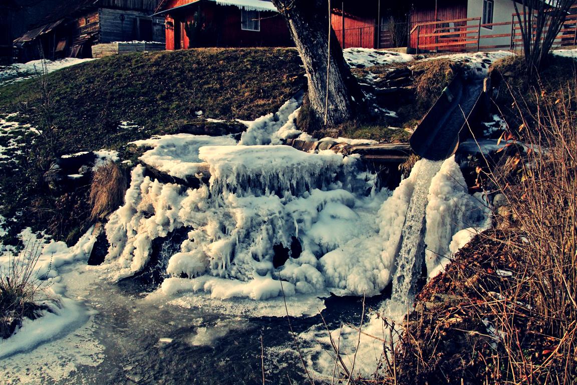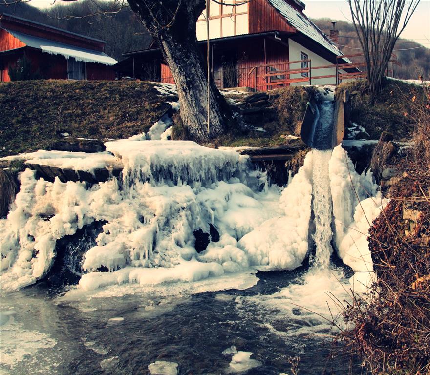 La Bulzeştii de Jos, o familie din sat a păstrat funcţională minunăţia mai veche de 200 de ani. Gerul iernii a împodobit cu ţurţuri şi mii de cristale străvechea vâltoare.