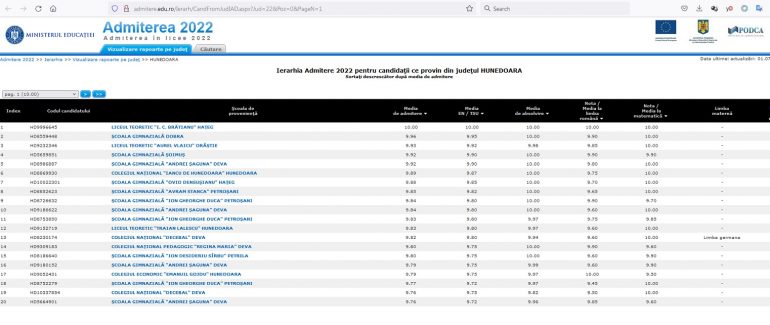 ACTUALITATEȘTIRI INFO HD IERARHIA MEDIILOR DE ADMITERE LA LICEU 4 iulie 2022 Petru Meszaros IȘJ Hunedoara a publicat lista pe site-ul instituției: isj.hd.edu.ro
