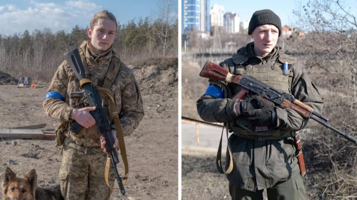 În stânga, Vadim, 18 ani, luptător în trupele de apărare teritorială. În dreapta, Denis, 19 ani, membru în garda națională ucraineană.