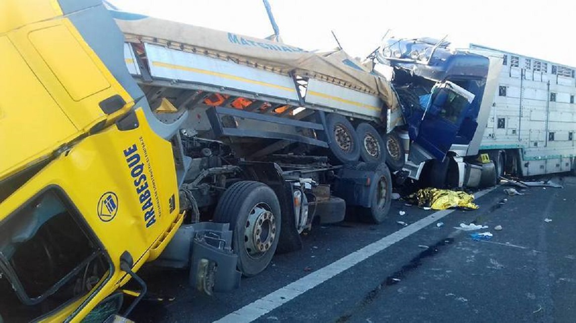 Accidentul s-a produs în jurul orei 8.00, la kilometrul 526 al autostrăzii, în zona localităţii Seceani din judeţul Timiş, fiind implicate două TIR-uri.