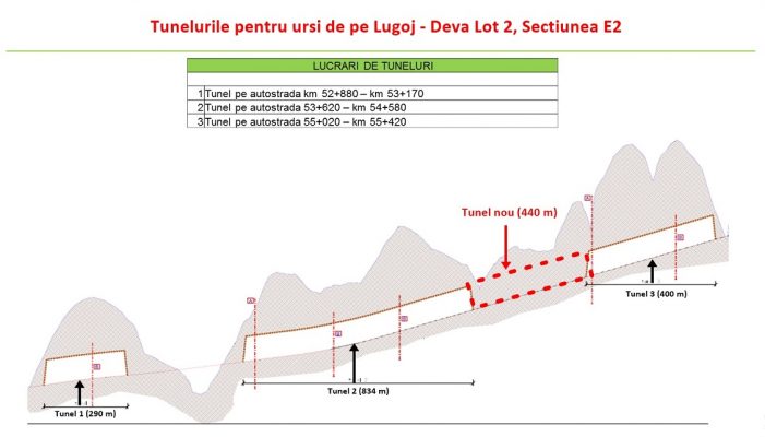 Mai exact, acolo ar urma să se construiască tunelurile pentru urși. Săptămâna trecută, ministrul Transporturilor a anuțat că a fost deblocată licitația, iar CNAIR a ajuns la un acord cu firma italiană Salini Impregilo. Italienii au obținut despgubiri de 270 de milioane de lei și repunerea în contract pentru rezilierea abuzivă a contractului din 2017.