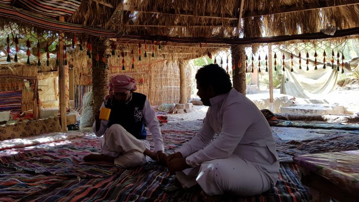 S-au cazat în Dahab, o staţiune din Peninsula Sinai folosită mai mult de către localnici, un fost sat de beduini. Beduini al căror stil străvechi de viaţă poate fi văzut şi acum în deşert: „Viața într-o oază se desfășoară complet diferit față de ceea ce știm noi. Oaza unde am ajuns noi este inclusă într-un traseu care merge la niște canioane extraordinare, în deșertul Sinai, undeva la 100 de kilometri de stațiunea Dahab. E singura oază pe o rază de sute de kilometri și singurul loc unde se găsește apă. Din cele mai vechi timpuri, cele mai multe caravane treceau pe aici tocmai pentru că e singurul loc cu apă. Acolo locuiesc câțiva beduini: au câteva capre, au cămile și se descurcă pentru că toate tururile organizate de agențiile locale poposesc acolo.