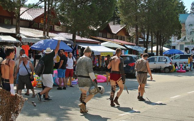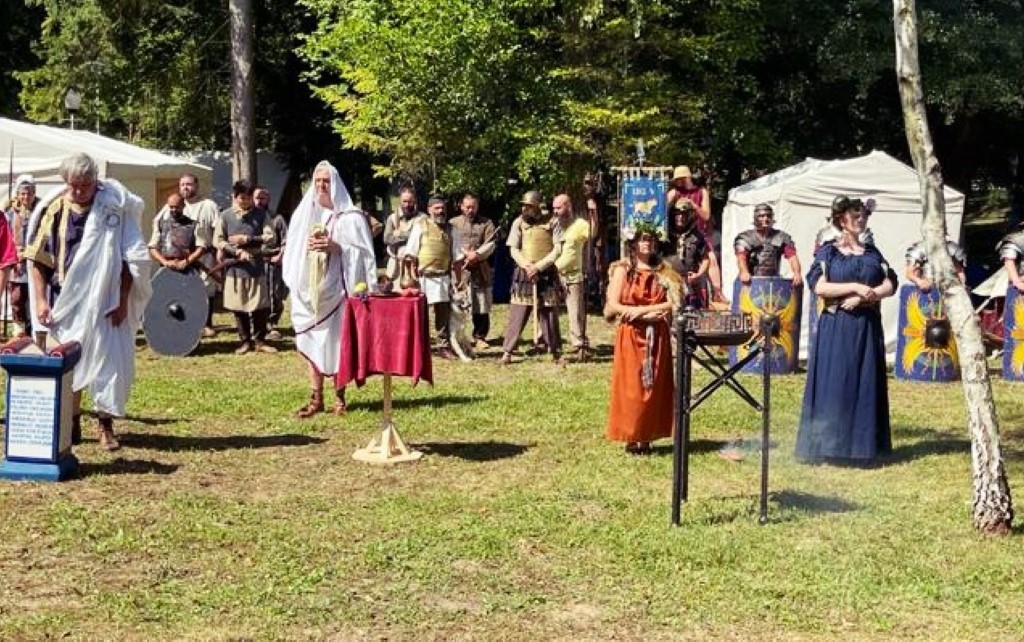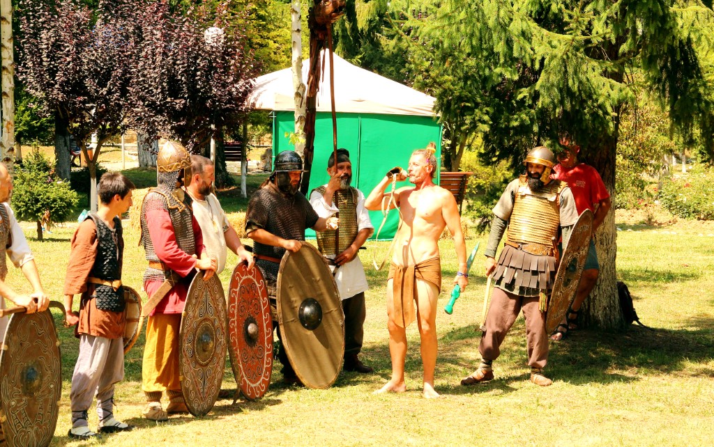 Câţiva gladiatori defilează prin centrul staţiunii: bat cu armele în coifuri sau armuri, iar sunetul ascuţit al metalului atrage atenţia tuturor. Turiştii întorc uimiţi capetele şi privesc spre grupul de tineri care păşesc cu hotărâre către tabăra celor de la Terra Dacica Aeterna. Lângă străvechile terme romane din fosta Germisara, din câţiva paşi, treci graniţa secolului 21 direct în Antichitate.