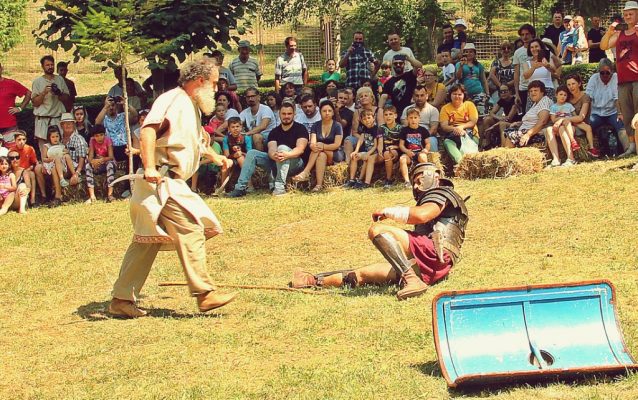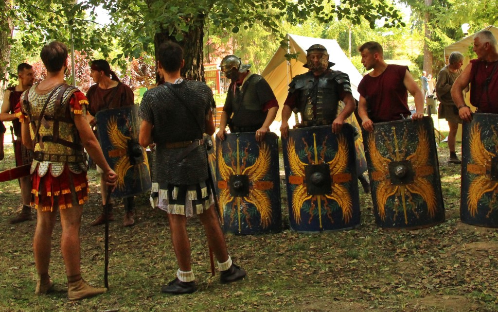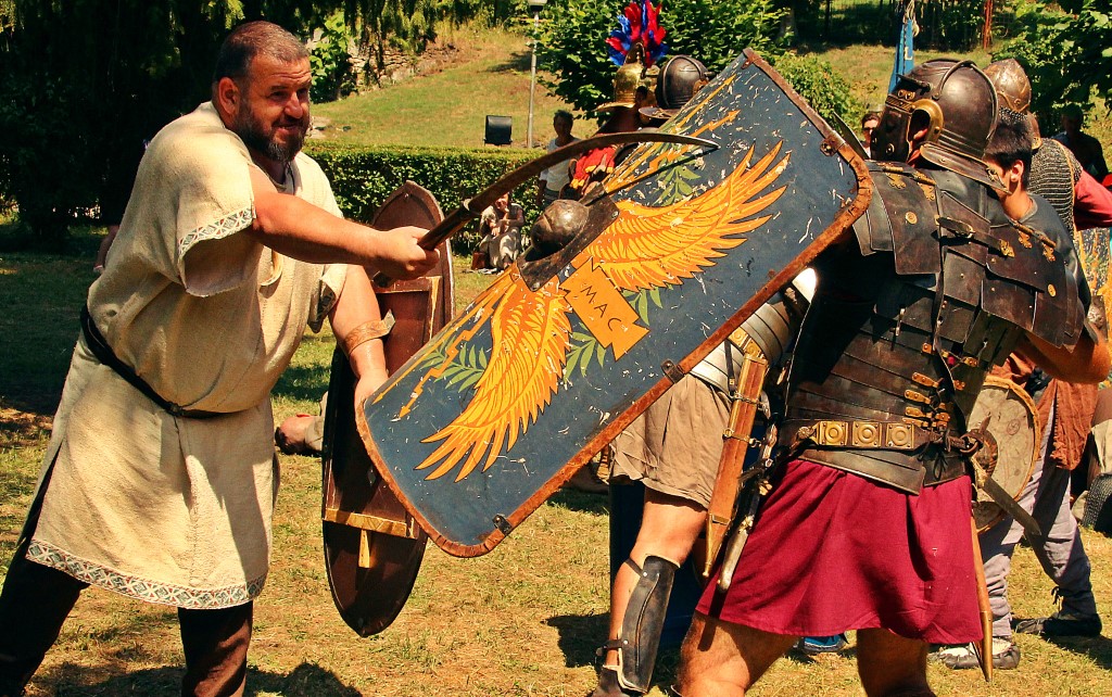 Când vine vremea ca Legiunea V Macedonica să înfrunte „barbarii”, publicul se strânge roată şi mai toţi îi încurajează pe daci. Ca să înţeleagă felul în care se mânuiesc armele, se face „stop cadru” pe mişcări. Când se aude tare „statio!”, toţi încremenesc, iar, după lupte, strigătul „resurrectio!”, are puterea de a „învia” soldaţii căzuţi la datorie. Însuşi Regele Decebal înfruntă un legionar, îl ucide, apoi spre amuzamentul publicului, îi cercetează încălţările şi îi ia casca. „Oamenii ne-au primit foarte fain aici, luptele le-am imaginat ca şi când dacii şi romanii se luptă pentru apele termale din Germisara care erau cunoscute din acele vremuri ca fiind binefăcătoare.
