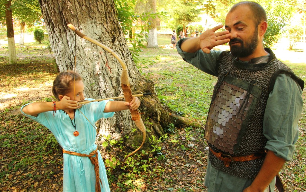 Meşterul dac a realizat o pereche din acest model şi pentru fetiţa lui, Alexia, o copilă care deprinde tainele arcului şi ale săgeţilor.