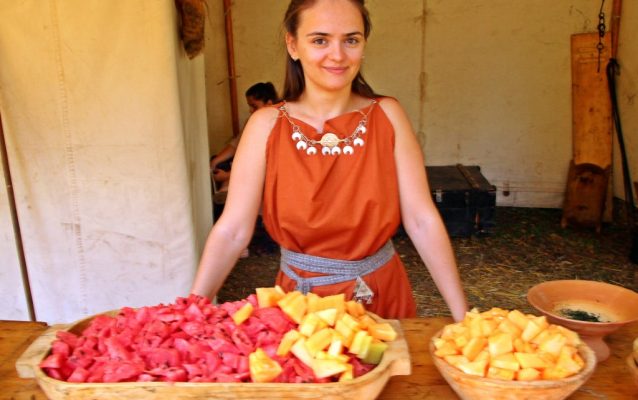 Poţi prăji, poţi fierbe, poţi face până şi diverse feluri pe grătar.” O oră mai târziu, desertul e pregătit din bucăţi de pepene verde amestecat cu pepene galben peste care se toarnă un răcoritor şi hrănitor sos de miere cu mentă. Să tot savurezi Antichitatea!