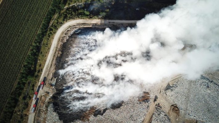 Incendiul de la Deponeul Central din Bârcea Mare, sub control, dar intervenția continuă