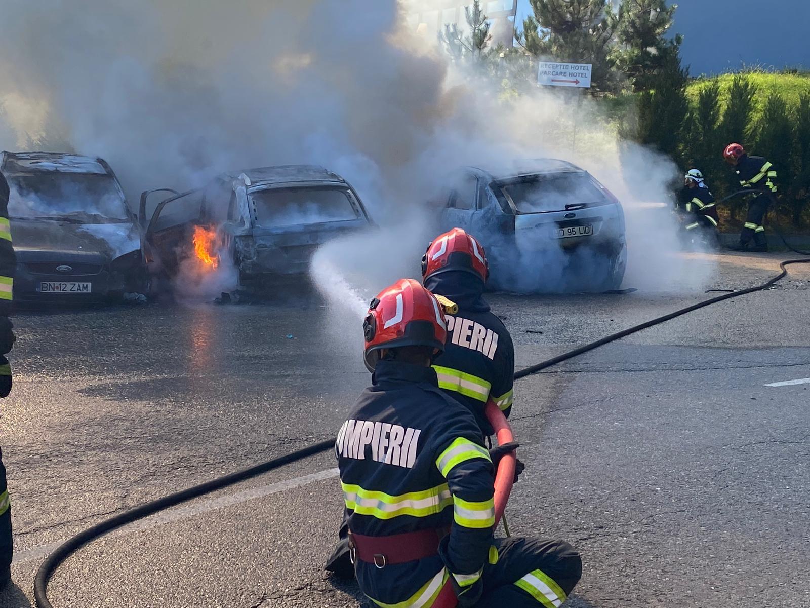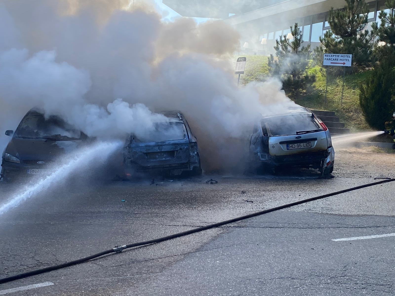 Flăcările au afectat alte 2 autoturisme aflate în aceeași parcare în imediata apropiere a autovehiculului de la care s-au declanșat flăcările.
