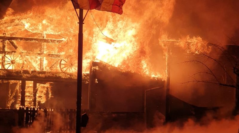 Incendiu puternic la o terasă din lemn din Lupeni