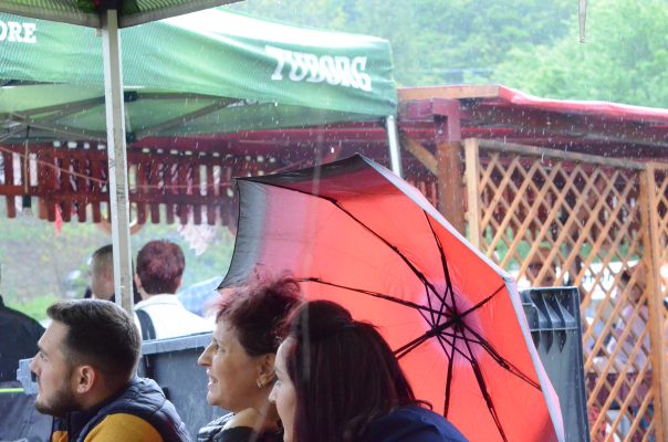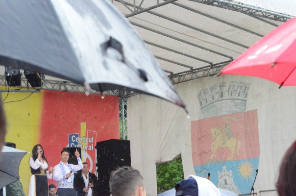 Și tot așa, lumea venea, lumea pleca, prezentatorul spectacolului făcea glume pe seama vremii capricioase sperând să convingă oamenii să mai rămână. Și parcă a avut gura aurită, cineva de acolo de sus l-a și auzit. După ora 17, norii s-au risipit, ploaia a încetinit, iar rând pe rând umbrelele au dispărut.