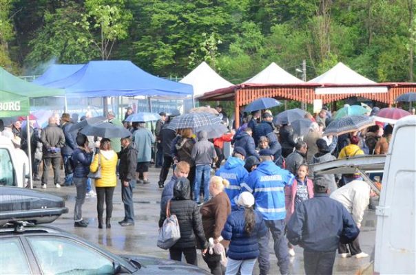 Ploaia pornită, încă de dimineață, a cam pus la îndoială câștigul comercianților, foarte puțini de altfel, aflați pe platoul de la pădurea Bejan, cu ocazia sărbătorii de 1 Mai.