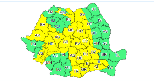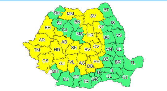De asemenea, aceştia au precizat că, de miercuri de la ora 23.00, până joi la ora 11.00, va fi cod galben în Crişana, cea mai mare parte a Munteniei şi a Transilvaniei, precum şi zonele de munte.