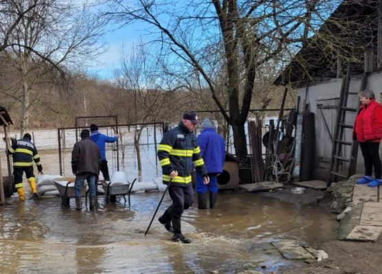 Pompierii au îndiguit curțile unor gospodării din două comune hunedorene. Sute de hectare de teren agricol sub ape