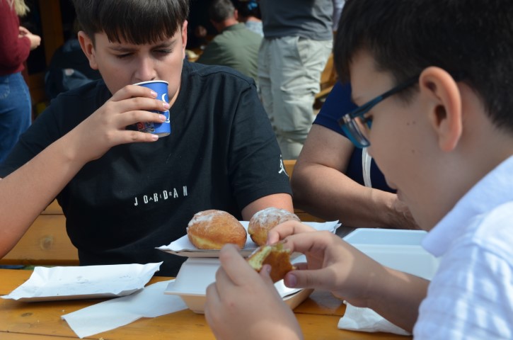 Înainte de a o lua de la capăt, făceau o pauză pentru a înfuleca gogoșile rotunde, pufoase și pudrate cu zahăr din belșug. Atmosfera a fost una simplă, curată, de bună așezare și tihnă.