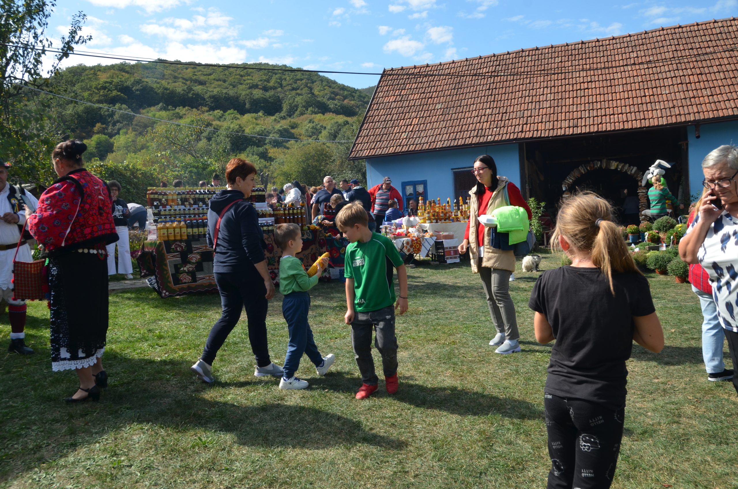Ștergarele tradiționale au fost așezate ca decor, iar în curte se găseau standuri cu pită boamfă, plăcinte cu dovleac și mălai ori cu prune și nucă, borcane cu gustul inegalabil al silvoiței și alte dulcețuri, murături, produse apicole, cununi de ceapă, flori de toamnă și multe alte bunătăți pregătite de producători locali, veniți să le expună în curtea „La Bunici”.