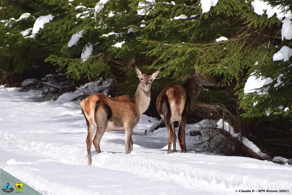 Imagini cu tabloul de primăvară-iarnă aduce biologul Administrației Parcului Național Retezat, Claudia Dănău, cea care a luat la pas zona protejată.
