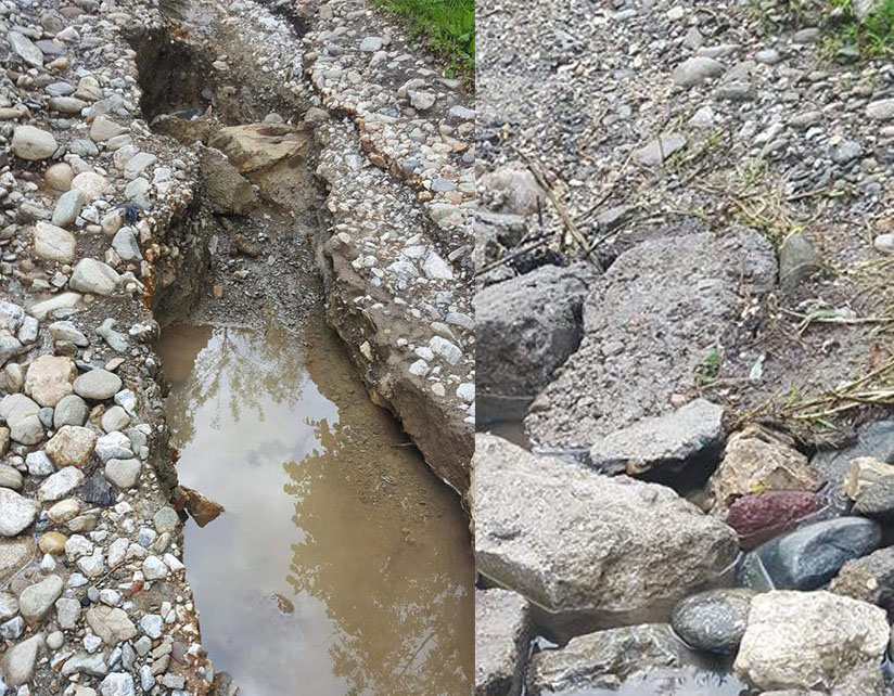 Oamenii dau mulți bani să-și cumpere steril ca să-l pună pe străzi, își cară bolovani enormi de la distanță ca să consolideze cât de cât drumul, dar fără niște rigole sau niște șanțuri pe margine, totul este în zadar când vin ploile!