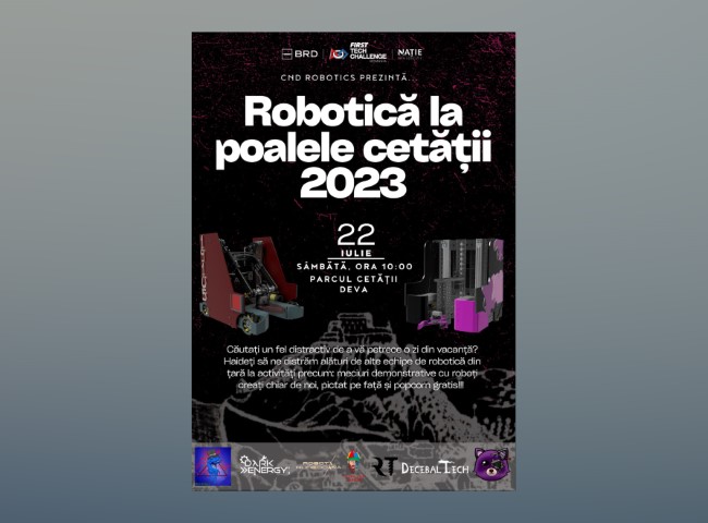 Sâmbătă, 22 iunie 2023, în Parcul ,,Cetate” Deva va avea loc evenimentul ,,Robotica la Poalele Cetății”, aflat la a cincea ediție.