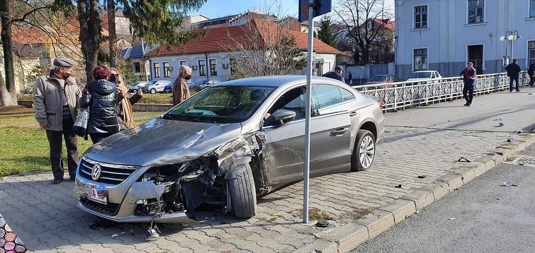 Un accident s-a petrecut în în centrul municipiului Petroşani. O mașină a ajuns pe trotuar, după ce a intrat în coliziune cu alt autoturism. Din fericire, pe trotuar nu se afla niciun trecător.