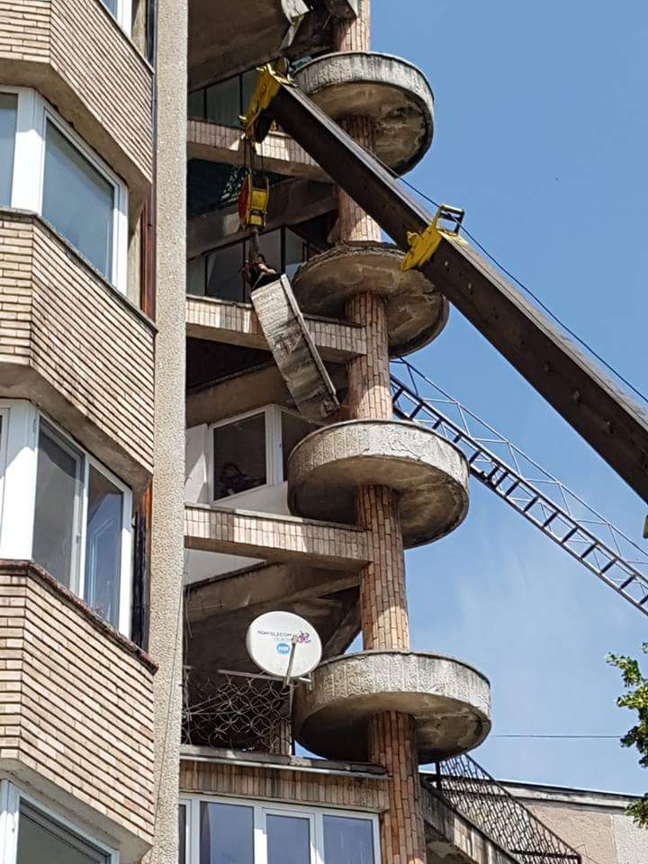 „Având în vedere că bucata era foarte grea şi amplasată la etajul 5 al blocului cu pricina, echipajele de pompieri împreună cu cei de la DADPP au intervenit pentru a lua bucata uriaşă de beton, astfel îndepărtând pericolul.