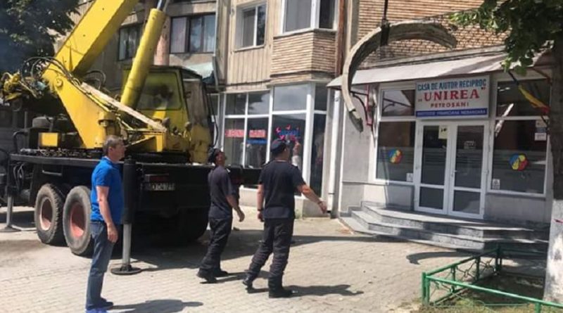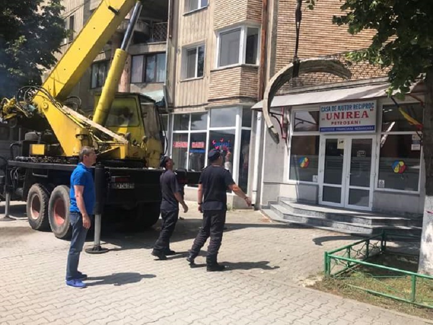 O bucată masivă din ornamentul unui bloc situat pe strada 1 Decembrie 1918 din Petroșani, a fost la un pas să cadă în urma vijeliei de sâmbătă noaptea. Pompieri, polițiști locali, dar și angajați ai primariei Petroșani au fost mobilizați la fața locului pentru a înlătura bucata de ornament ce era ce punctul de a se prăbuși.