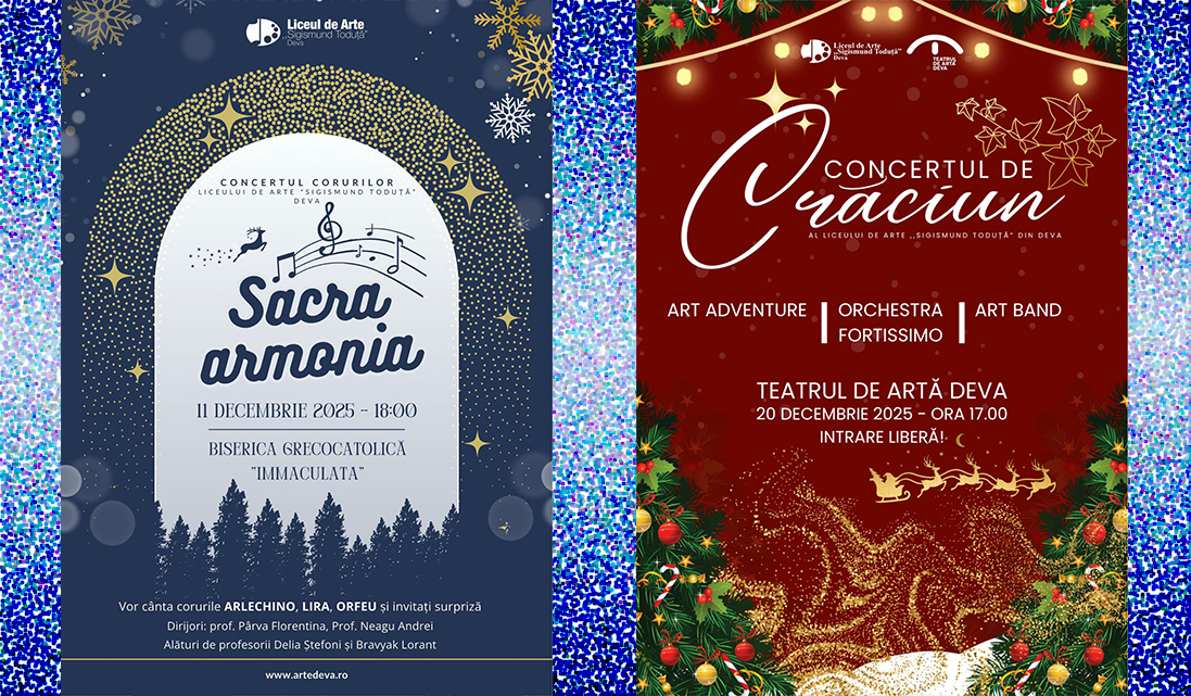 Luna decembrie aduce, ca în fiecare an, o explozie de energie și emoție la Liceul de Arte „Sigismund Toduță” din Deva. Concertele de Crăciun, devenite deja o tradiție îndrăgită de comunitatea deveană, revin în 2025 cu trei evenimente speciale, pregătite cu talent, profesionalism și multă bucurie.