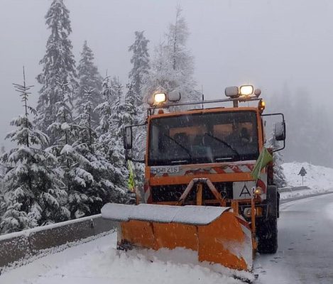 Zăpada s-a așternut pe DN 7A la limita județelor Hunedoara și Vâlcea. Drumarii se află în teren și îi sfătuiesc pe cei care pleacă la drum să aibă cauciucuri de iarnă pentru zonele de munte.