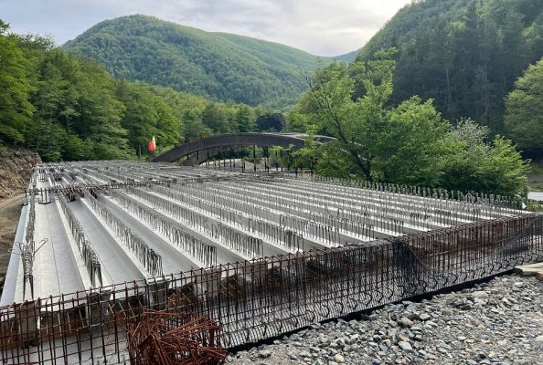 Lucrările sunt în plină desfășurare la noul pod de la Lainici. Potrivit reprezentanților Companiei Naționale de Autostrăzi și și Infrastructură Rutieră din România, încă mai sunt câteva zeci de grinzi de montat la noul pod, din cele 90 în total.