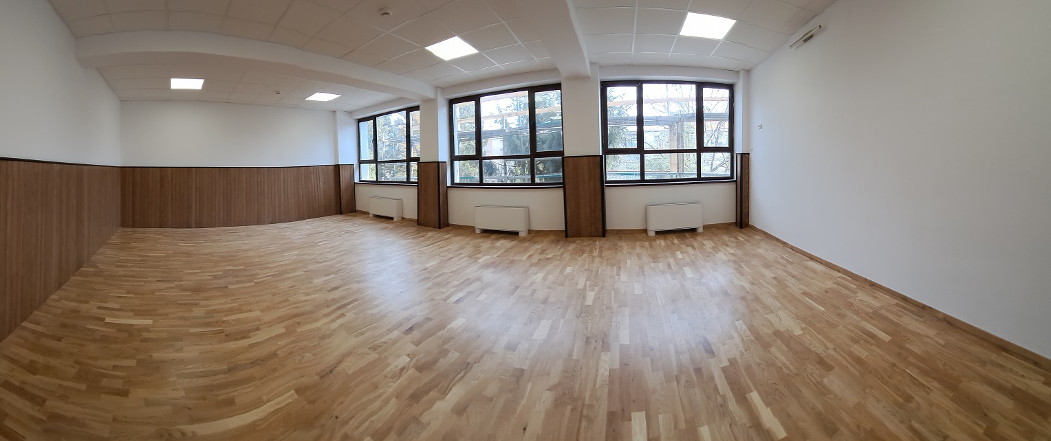 La corpul de clădire pentru învățământul primar s-au finalizat lucrările de montare a lambriurilor în sălile de clasă și laboratoare, a covorului PVC (tarkett) pe pardoseli și perete în holuri.