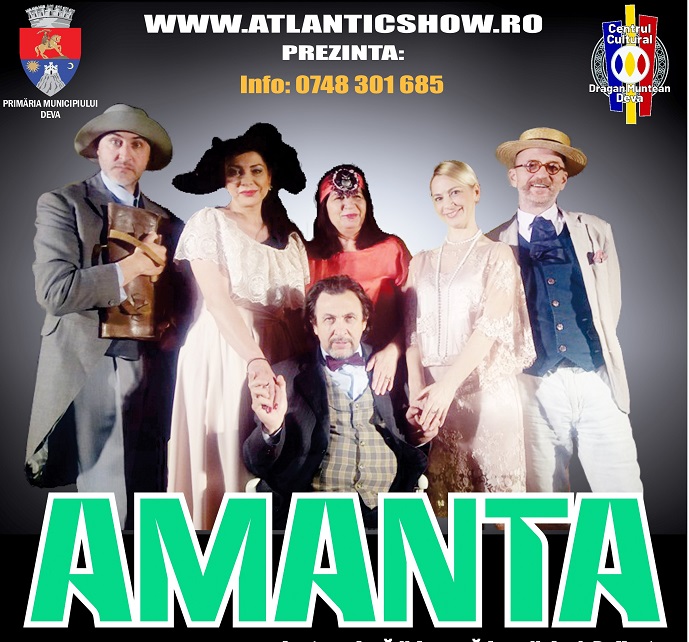 O comedie savuroasă, cu actori de excepţie! Primăria Municipiului Deva şi Centrul Cultural „Drăgan Muntean” vă invită, marţi, 18 iunie 2019, la ora 20:00, în sala mare a Centrului Cultural din Deva, la spectacolul cu piesa „Amanta”, adaptare după celebra comedie „Încurcă lume”, de A. D. Hertz.