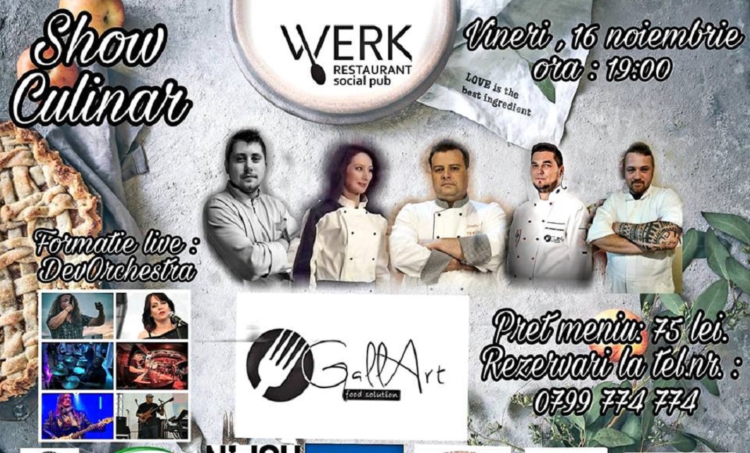 ACTUALITATEȘTIRI INFO HD Mâine seară, show culinar de zile mari la „Werk” 15 noiembrie 2018 Petru Meszaros La restaurantul din Hunedoara vor găti cunoscuți maeștri ai gastronomiei