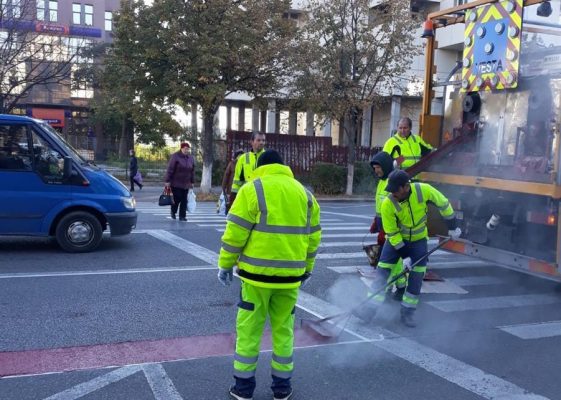 DEVA: S-au demarat lucrările la marcajele rutiere antiderapante de la trecerile de pietoni din municipiu
