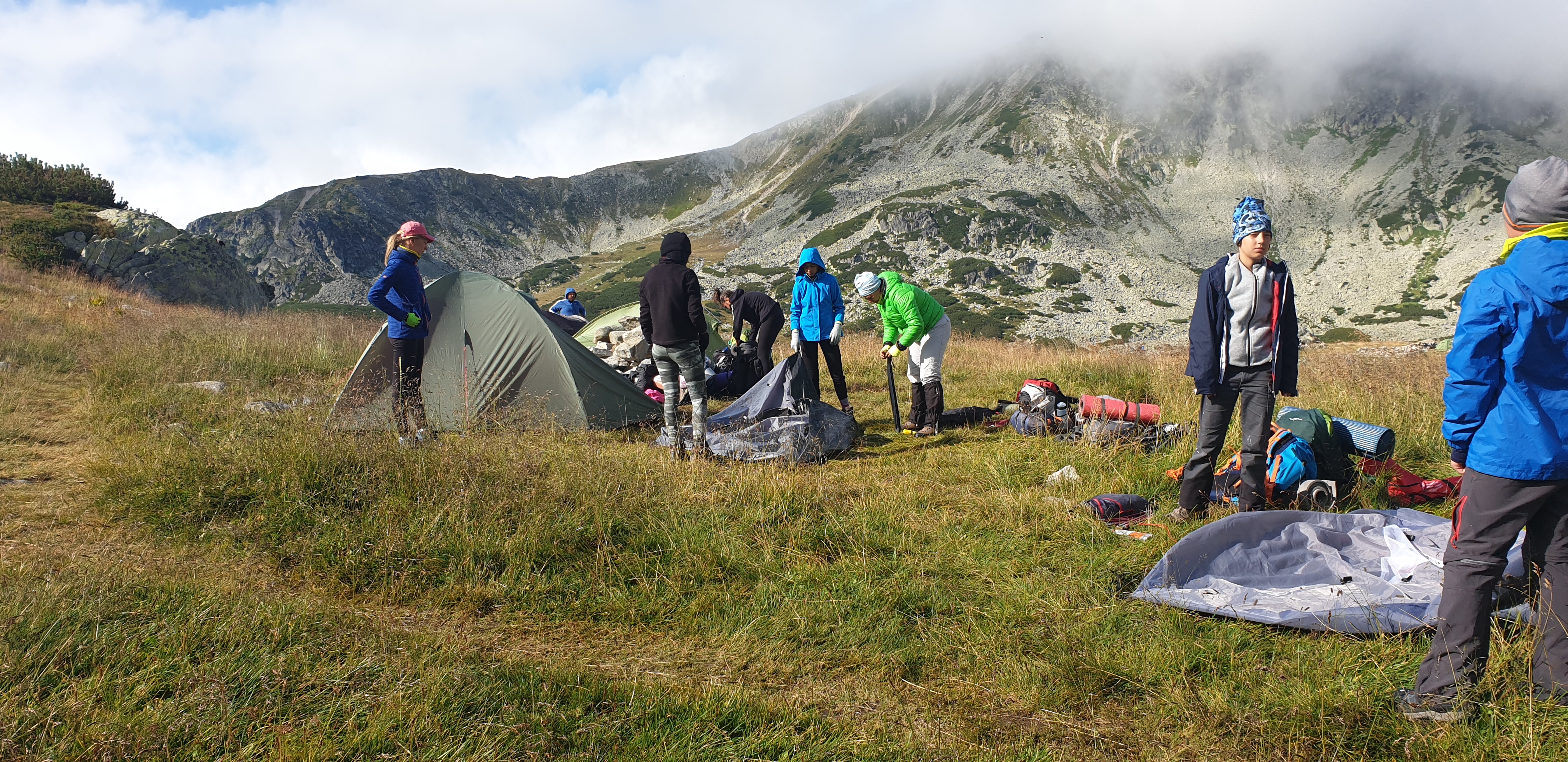Membrii “Commando RetezatKorps 2019” au bifat lista cu echipament, au întins corturile pentru verificare, au îndesat rucsacii: “Nu e uşor să stai pe munte, să duci cu tine lucrurile de care ai nevoie tu, dar şi copiii pe care îi ai în grijă. Îţi trebuie să ştii exact ce haine să iei şi câte, plus oale, căni, mâncare, ceai. Eu, de exemplu, am renunţat la tubul cu cafea. Pur şi simplu, nu mai intra. Şi am dus în spate doi rucsaci grei, de simţeam la un moment că nu mai am aer”, spune Mihaela, care e şi profesoară de gimnastică la Liceul Sportiv Deva. Trupa a urcat pe jos, din Poiana Pelegii, iar Cătălin Josan a făcut două drumuri până în locul de campare pentru a aduce sacii cu vopsea în munte.