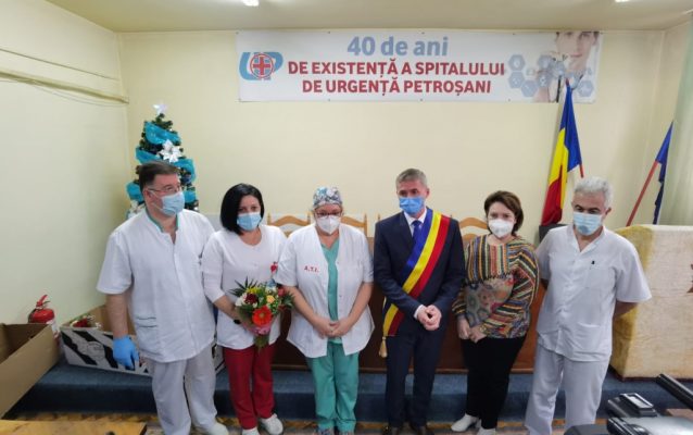 „Am venit în semn de recunoștință și prețuire pentru tot personalul Spitalului de Urgență din Petroșani, pentru tot ceea ce au făcut și vor face pentru cetățenii din Petroșani și din Valea Jiului să aibă siguranța că aici lucrurile sunt făcute bine și în sprijinul dumnealor. Dorim să oferim un mic semn de recunoștință din partea comunității pentru dumneavoastră, pentru cei care lucrați la Spitalul de Urgență din Petroșani, pentru modul în care ați reușit în această pandemie să continuați activitatea, să țineți steagul sus și Spitalul de Urgență din Petroșani să treacă cu bine peste aceste momente dificile care au fost în acest an de pandemie. Vreau să vă felicit pe toți cei care lucrați aici. Dumneavoastră ați fost și sunteți cei din linia întâi. Faptul că Spitalul din Petroșani chiar dacă a trecut prin moment foarte grele și dificile ați reușit prin ceea ce ați făcut să nu fie nevoie de management miliar și să mergeți mai departe să puteți să oferiți asistență medicală tuturor celor din Valea Jiului”, a spus Tiberiu Iacob Ridzi, primarul municipiului Petroșani.