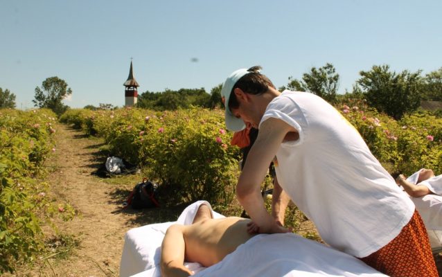 Adriana Stretean este psiholog şi, după ce a urmat şi cursuri de masaj, s-a gândit să folosească din plin toate atuurile locului încărcat cu milioane de roze aromate. Toată luna iunie, locul va găzdui un inedit festival al trandafirilor. Aşa că a invitat aici câţiva profesionişti în arta masajului şi ideea s-a dovedit a fi … miraculoasă.
