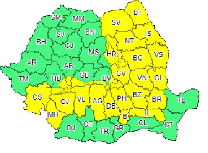 ANM a emis astăzi o atenționare COD GALBEN de vreme rea, valabilă din 24 ianuarie, ora 4.00 și până pe 25 ianuarie, ora 14.00, potrivit căreia, în zonele de mare altitudine a Munților Banatului, Carpaților Meridionali și Carpaților de Curbură, va ninge abundent, iar vântul va avea intensificări cu rafale de 60-80 km/h, viscolind și troienind zăpada. În zonele mai joase, ploaia și lapovița vor determina topirea stratului de zăpadă.