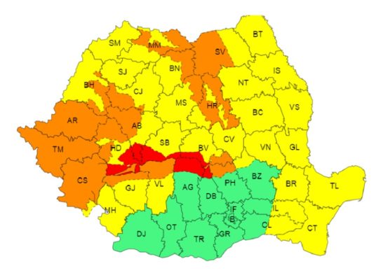 Noi avertizări cod galbern, cod portocaliu, dar şi cod roşu pentru județul Hunedoara