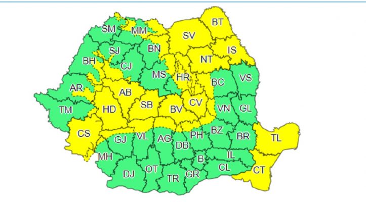 De luni, de la 12.00, până marţi la aceeaşi oră, este cod galben de vânt puternic în zona de munte, sudul Banatului, al Transilvaniei şi în Dobrogea.