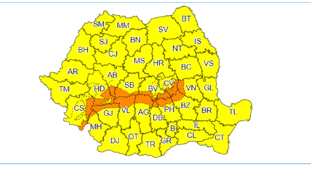 Meteorologii au actualizat, joi, prognoza pentru următoarele zile şi anunţă cod portocaliu de vânt, viscol şi vizibilitate redusă în zonele montane Rafalele vor depăşi 130 de kilometri la oră. În plus, a fost emis şi un cod galben de vânt, ninsori viscolite şi polei pentru întreaga ţară. De asemenea, avertizarea de răcire a vremii a intrat în vigoare la ora 12.00 şi a fost prelungită până luni.