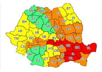 Meteorologii au emis cod galben şi portocaliu, pentru cea mai mare parte a țării și cod roșu în Muntenia și Dobrogea