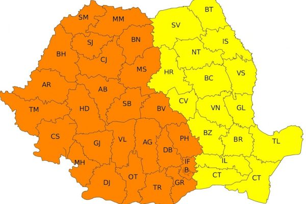 Meteorologii au emis Cod portocaliu pentru jumătatea vestică a României şi Cod galben pentru restul teritoriului
