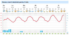 Instabilitatea atmosferică se va accentua în jumătatea de vest a ţării, unde vor fi ploi torenţiale şi vijelii, care se vor extinde spre est. Temperaturile nu vor mai depăşi 30 de grade în vestul ţării şi în Transilvania, media fiind în jurul valorii de 25 de grade.