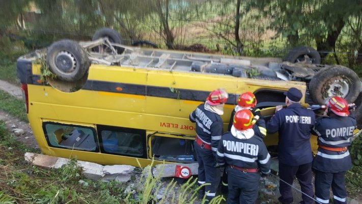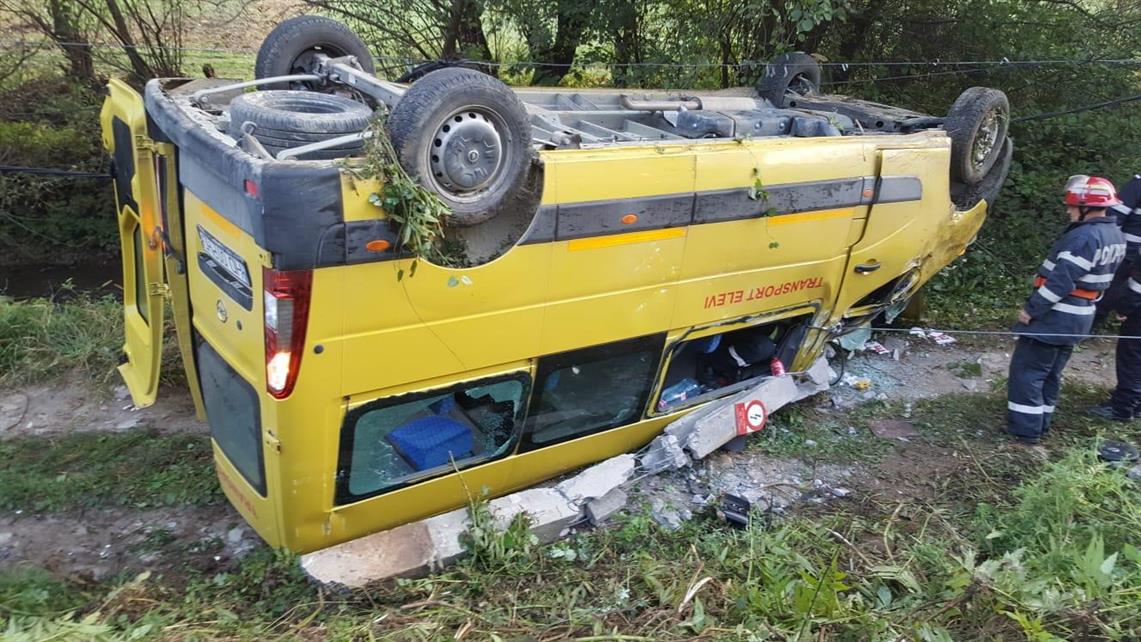 Un microbuz școlar cu elevi s-a răsturnat. 4 elevi au fost transportați la spital