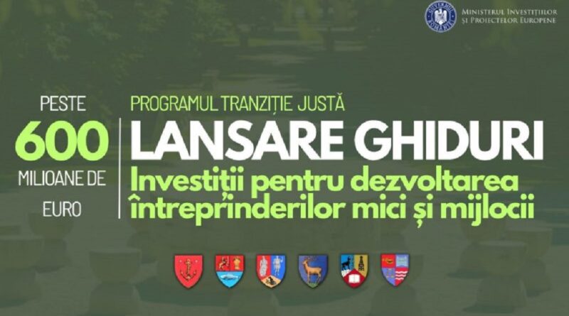 Ministerul Investiţiilor şi Proiectelor Europene anunţă că a lansat, joi, în consultare publică, primele ghiduri ale solicitantului pentru două apeluri de proiecte care vor fi finanţate prin Programul Tranziţie Justă 2021-2027. Acestea vor sprijini sectorul antreprenorial productiv mic şi mijlociu, pentru creşterea competitivităţii şi a capacităţii economiilor locale de a genera locuri de muncă durabile, sigure şi cu un nivel de salarizare atractiv. „Aceste prime apeluri aduc deja 620 de milioane în economia locală prin două tipuri de granturi care vor sprijini întreprinderile să investească în activităţi productive şi, mai ales, să creeze noi locuri de muncă”, afirmă ministrul Marcel Boloş.