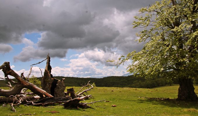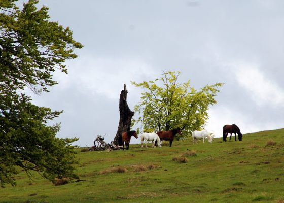 În faţă culmile umbroase se văluresc îndelung şi se opresc în zare de unde urcă crestele înzăpezite ale munţiilor Văii Jiului. De cealaltă parte, păşunea alpină e regatul cailor liberi. Armăsari mândri îşi scutură coamele şi privesc către trecători. Ferite de ochii lumii, locuri de paradis îşi potrivesc culorile de la pământ până în azuriul cerului străbătut de nori bucălaţi. Fiecare teacă de iarbă, orişice petală îşi găseşte rostul şi împreună îmbogăţesc peisajul tulburător de frumos al drumurilor de plai. Fagi impresionanţi cu tulpini răsucite, ridică verdele crud dintre ramurile întinse într-un balet grozav deasupra păşunilor. Lângă vâltorile de viaţă, alţii giganţi zac prăbuşiţi, seceraţi de fulgere, cu pântecele arse.