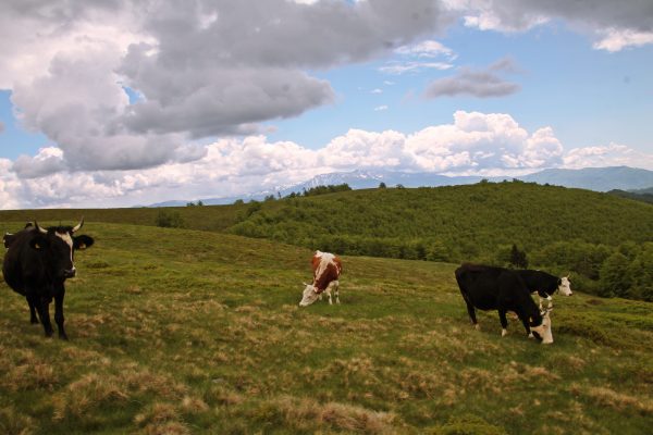 Priveliştea e una de zile mari şi rare: în zare, Masivul Parâng poartă încă urmele iernii, în timp ce, în munţii de aici de-abia au înflorit toporaşii care aduc pete de culoare în potopul de narcise sălbatice. Bobiţele roşiatice ale afinilor stropesc cu picurii vii decorul de la firul ierbii. E o provocare pentru ochii să descoperi nuanţele locului.